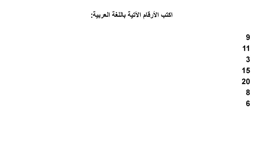 اكتب األرقام اآلتية باللغة العربية:9