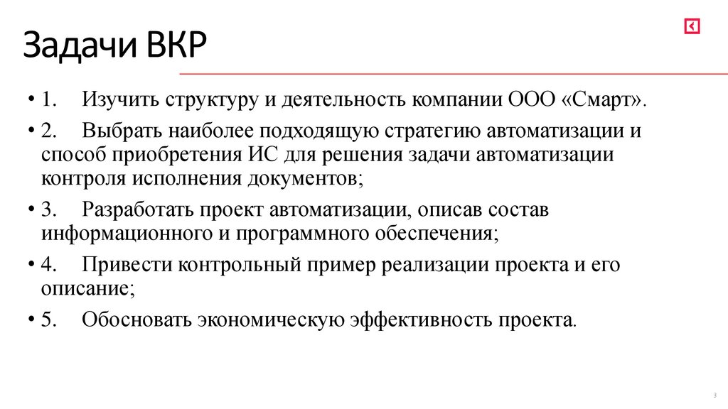 Задачи ВКР• 1. Изучить структуру и деятельность компании ООО «Смарт».