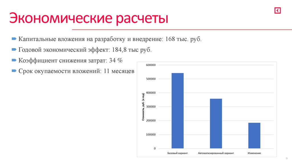 Экономические расчетыКапитальные вложения на разработку и внедрение: 168 тыс. руб.