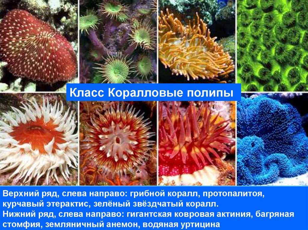 Класс Коралловые полипыВерхний ряд, слева направо: мёртвые пальцы, красный