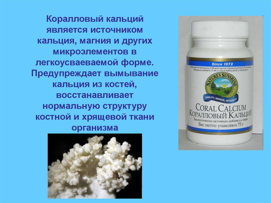 Коралловый кальцийявляется источником