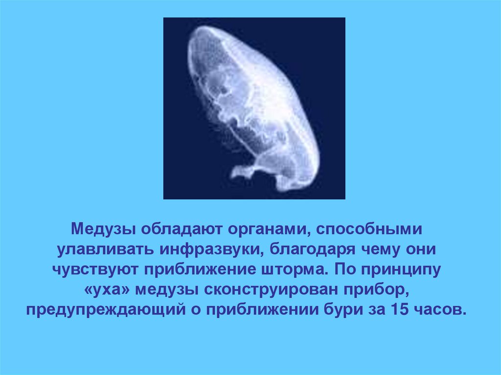 Медузы обладают органами, способнымиулавливать инфразвуки, благодаря чему они