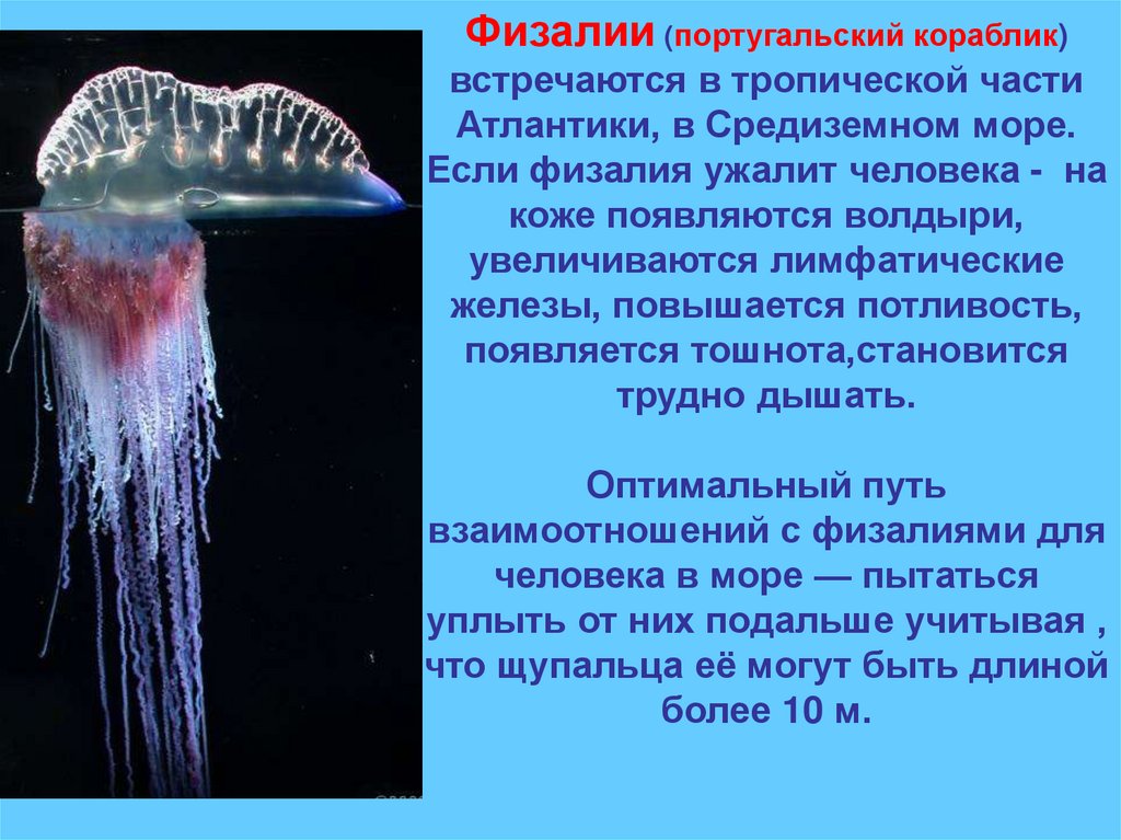 Физалии (португальский кораблик)встречаются в тропической части