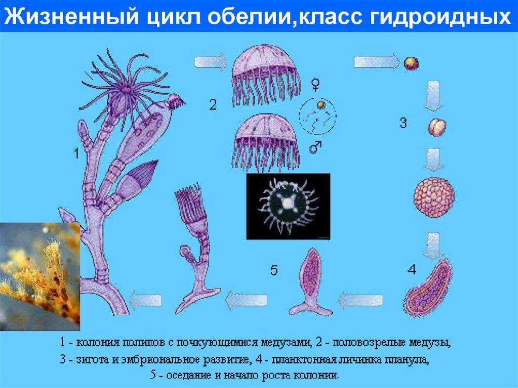 Жизненный цикл обелии,класс гидроидных10.