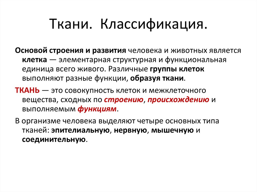 Ткани. Классификация.Основой строения и развития человека и животных является