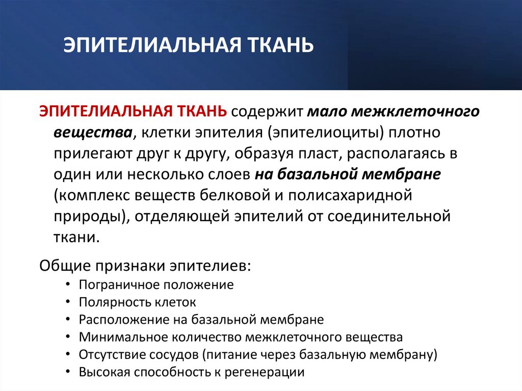 Общие признаки эпителиев: