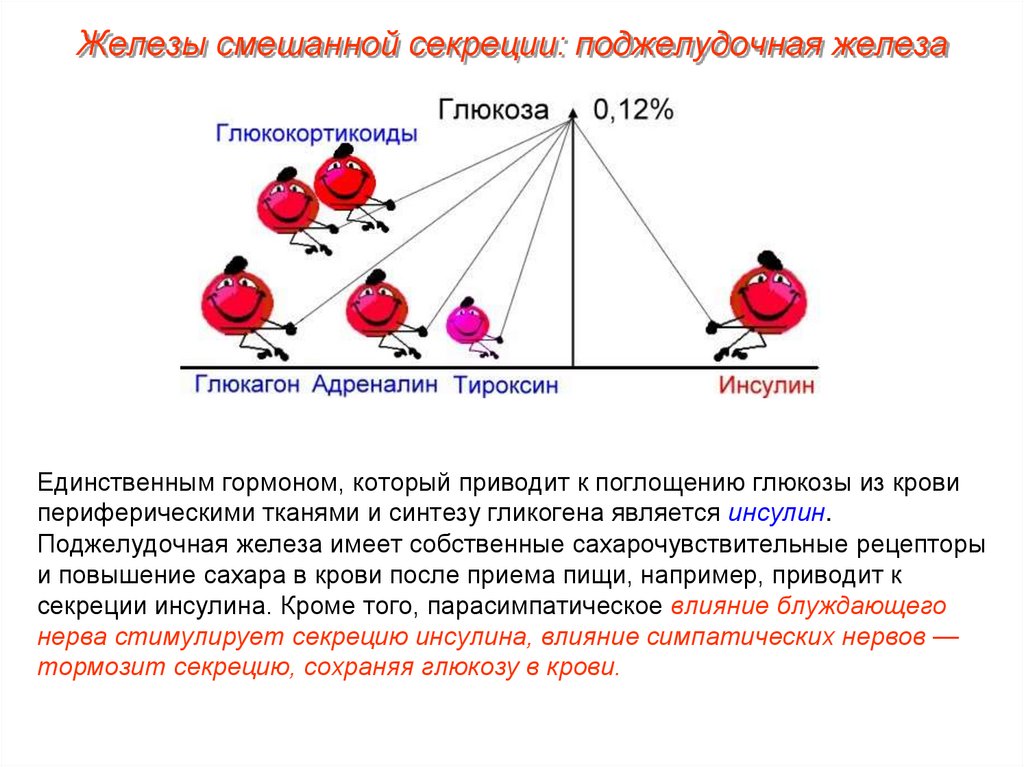 выведению глюкозы в кровь, т.е. действует