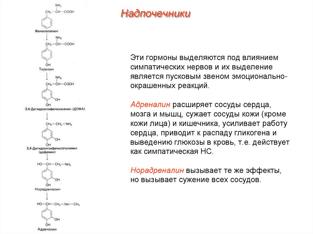 аминокислот). Большое количество адреналина выделяется при сильных