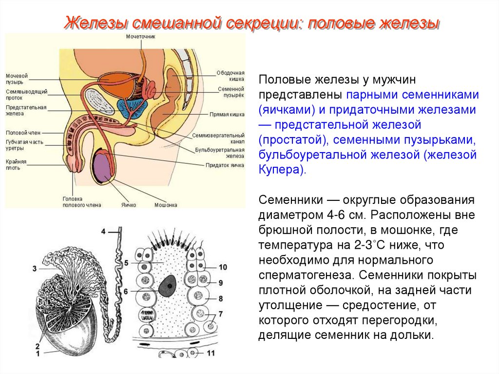 Железы смешанной секреции: половые железыПоловые железы у мужчин