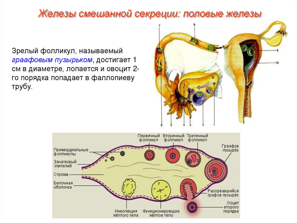 Железы смешанной секреции: половые железыЗрелый фолликул, называемый