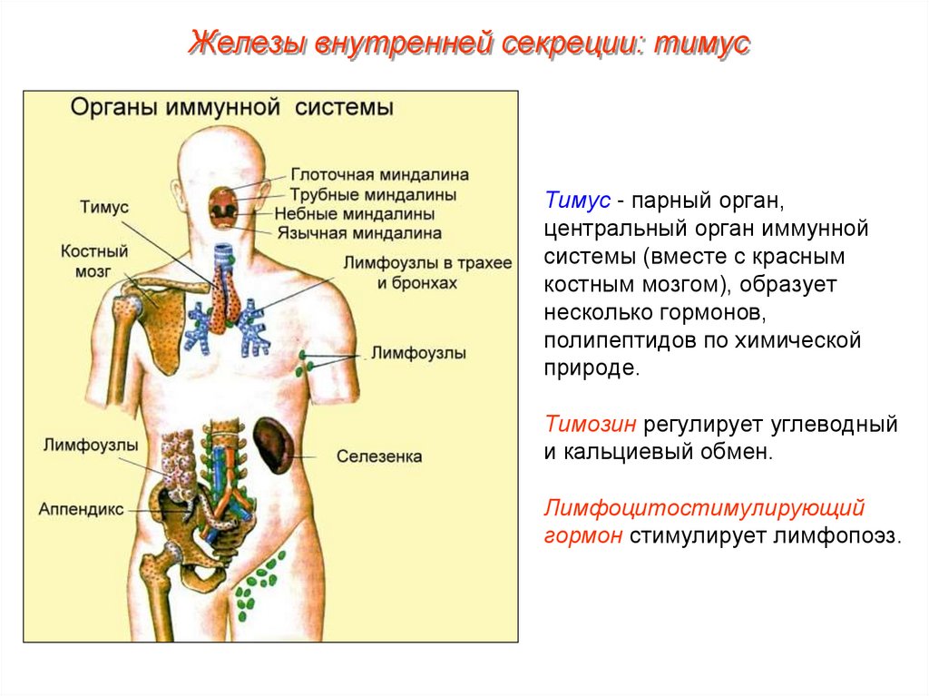 Железы внутренней секреции: тимусТимус - парный орган,