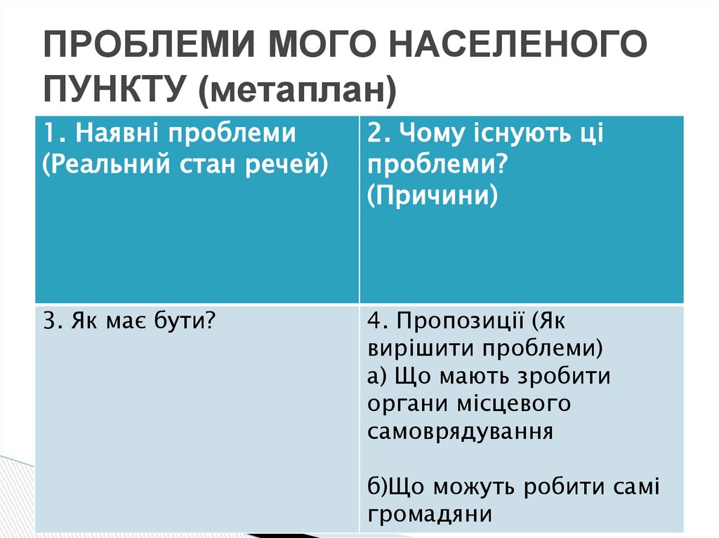 ПРОБЛЕМИ МОГО НАСЕЛЕНОГОПУНКТУ (метаплан)