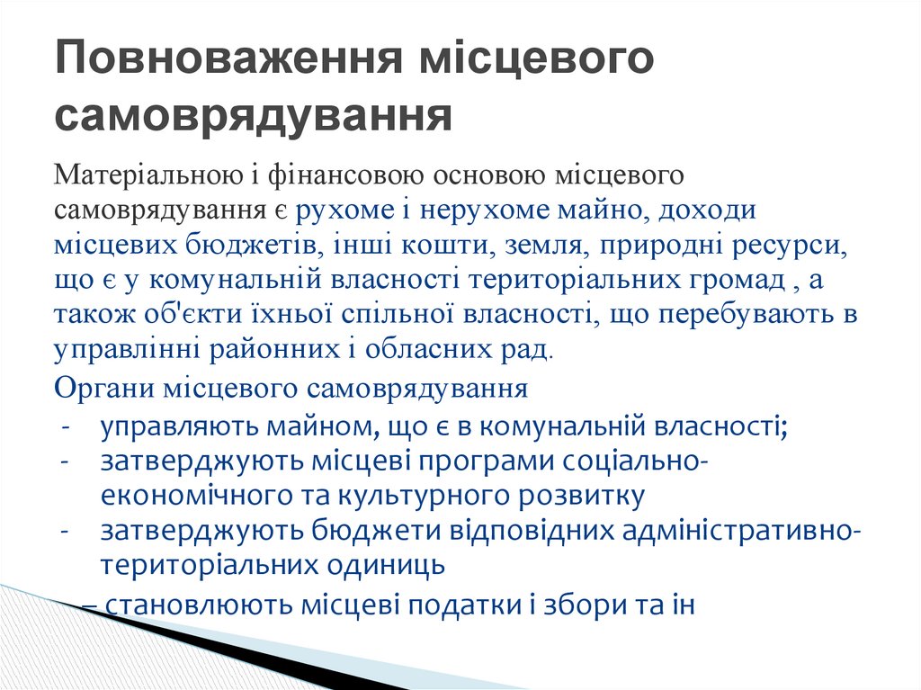 - затверджують місцеві програми соціальноекономічного та культурного розвитку
