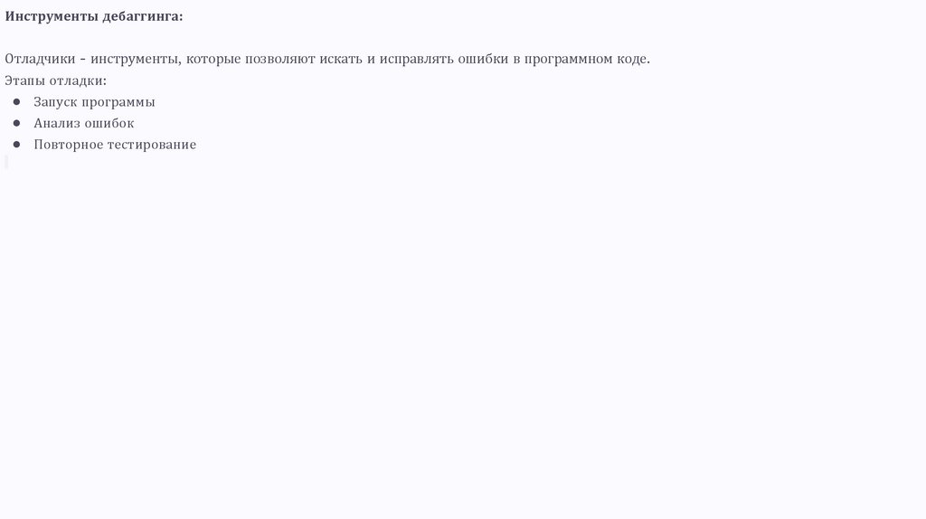 за его работой. Они позволяют выявить ошибки и проблемы, которые нельзя обнаружить