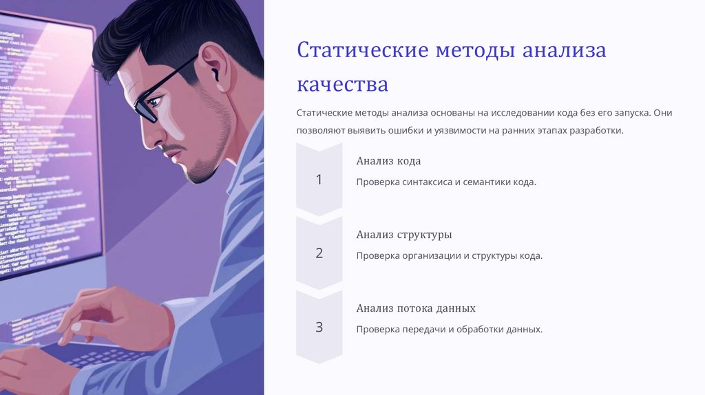 Статические методы анализа основаны на исследовании кода без его запуска. Они