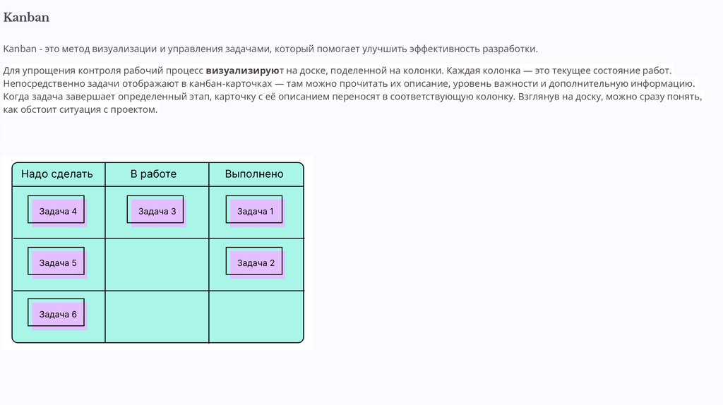 KanbanKanban - это метод визуализации и управления задачами, который помогает улучшить эффективность разработки.