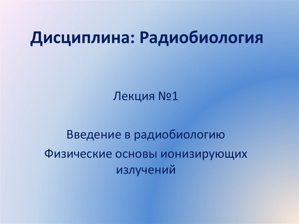 1. Дисциплина: Радиобиология