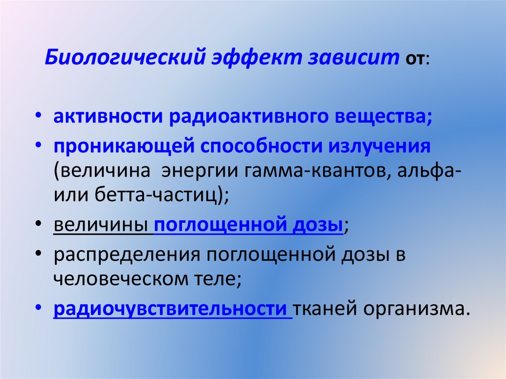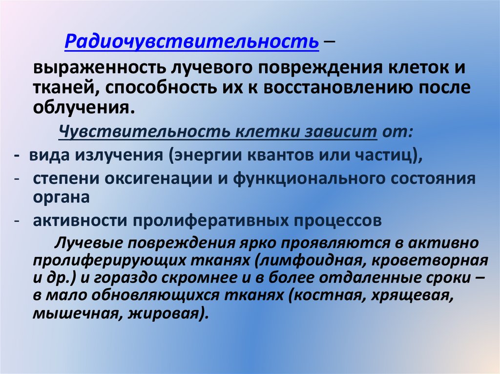 радиобиологии, характеризующейся изучением связи