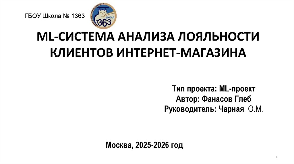 ГБОУ Школа № 1363ML-СИСТЕМА АНАЛИЗА ЛОЯЛЬНОСТИ