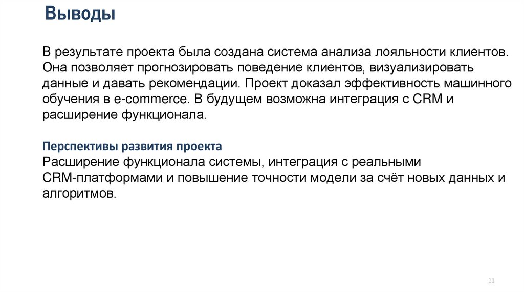 ВыводыВ результате проекта была создана система анализа лояльности клиентов.