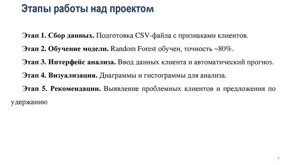 Этапы работы над проектомЭтап 1. Сбор данных. Подготовка CSV-файла с признаками клиентов.