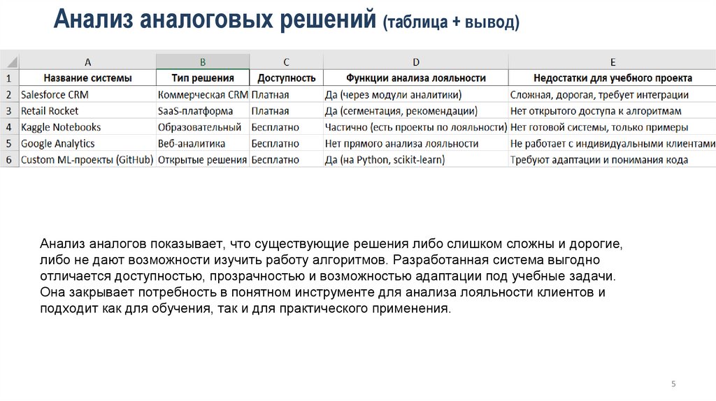 Анализ аналоговых решений (таблица + вывод)Анализ аналогов показывает, что существующие решения либо слишком сложны и дорогие,