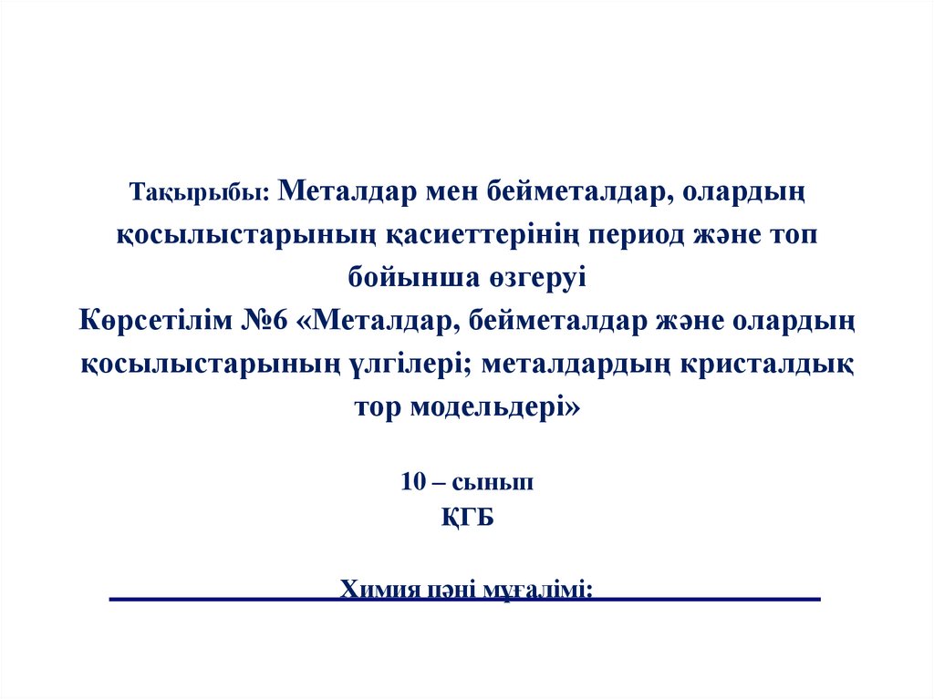 Тақырыбы: Металдар мен бейметалдар, олардыңқосылыстарының қасиеттерінің период және топ