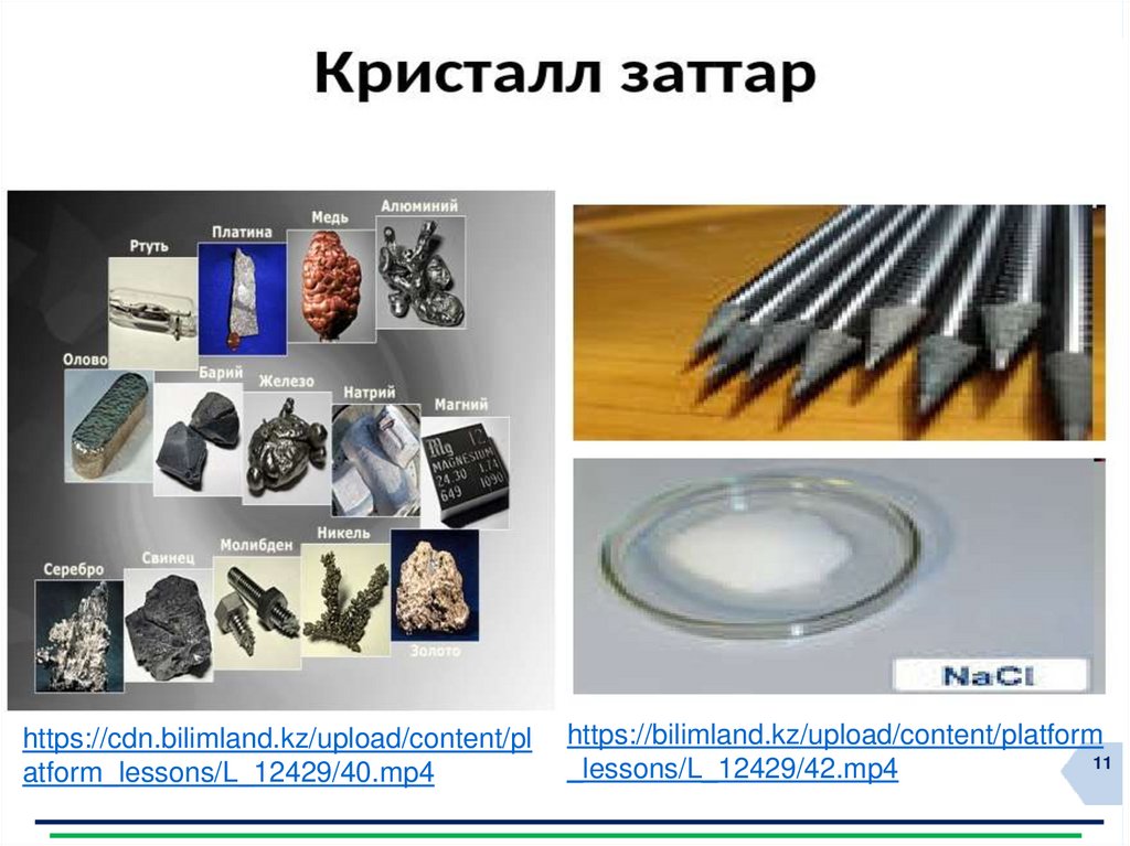 қосылыстарының үлгілері; металдардың кристалдық