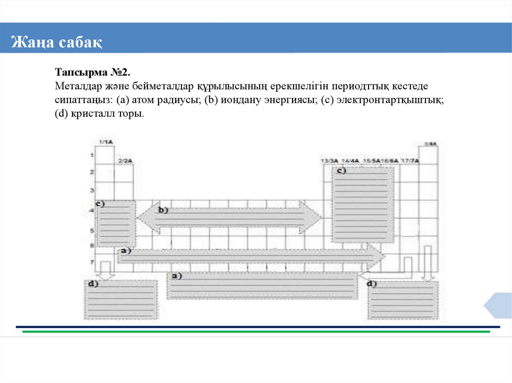 Металдар және бейметалдар құрылысының ерекшелігін периодттық кестеде