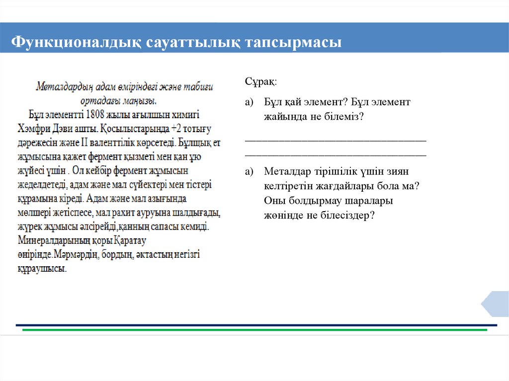 Функционалдық сауаттылық тапсырмасыCұрақ: