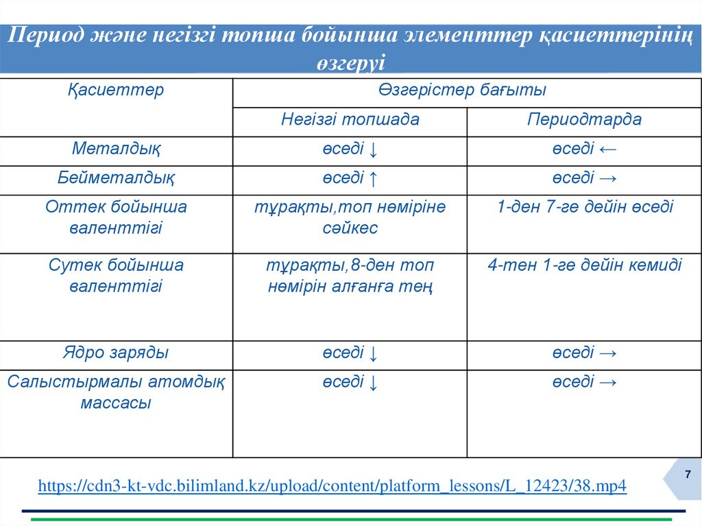 Период және негізгі топша бойынша элементтер қасиеттерініңөзгеруі