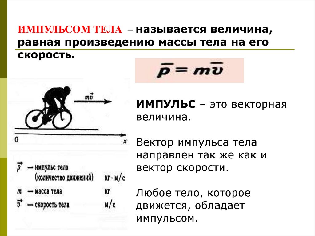 ИМПУЛЬСОМ ТЕЛА – называется величина,равная произведению массы тела на его