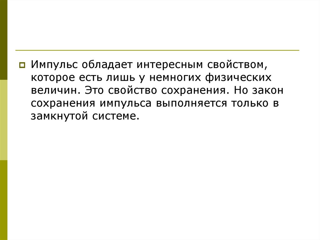 Импульс обладает интересным свойством,которое есть лишь у немногих физических
