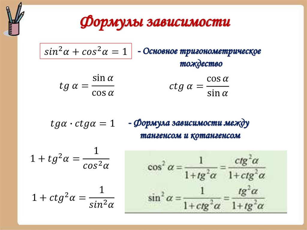 Формулы зависимости
