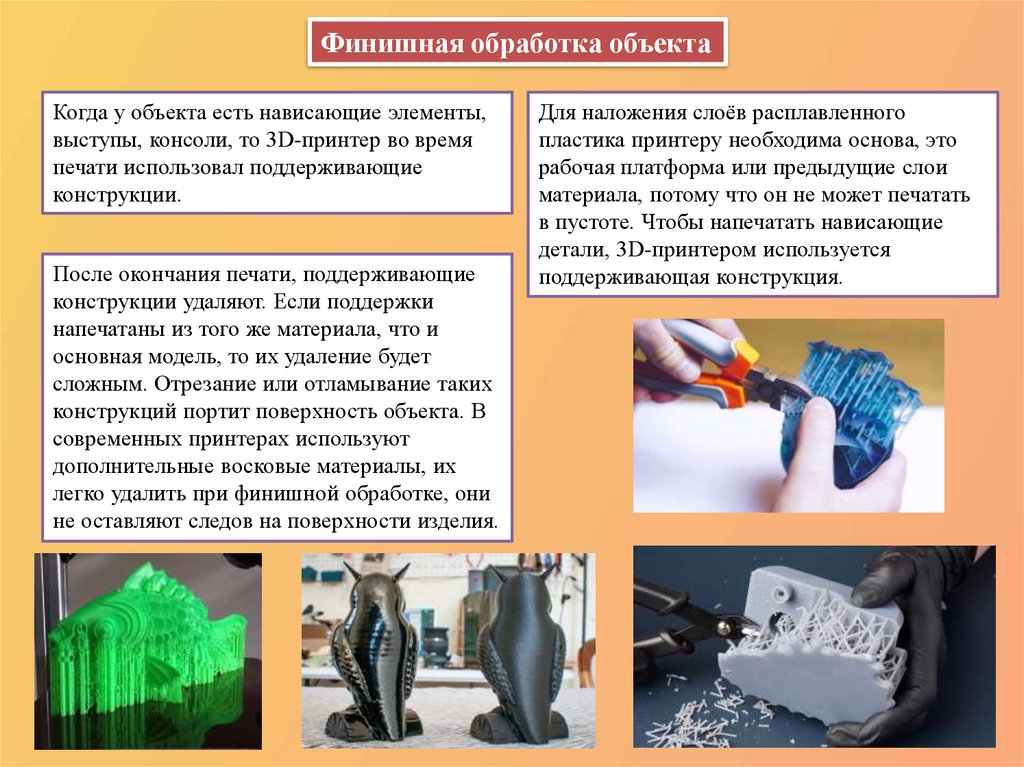 После окончания печати, поддерживающие
