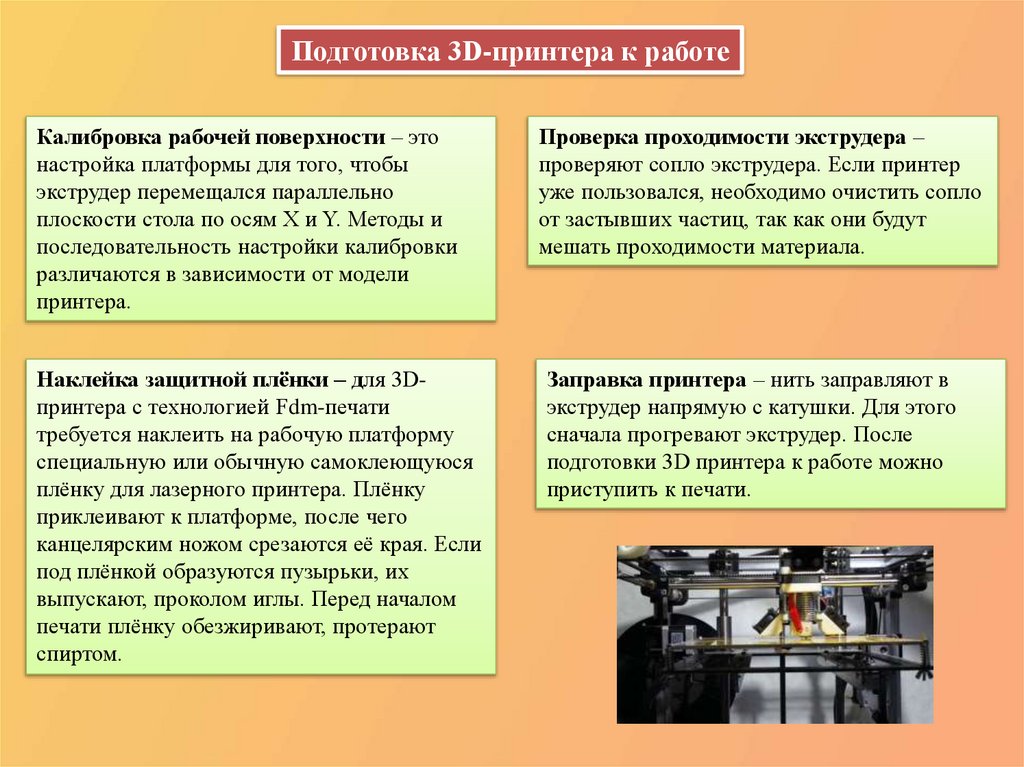 подготовки 3D принтера к работе можно