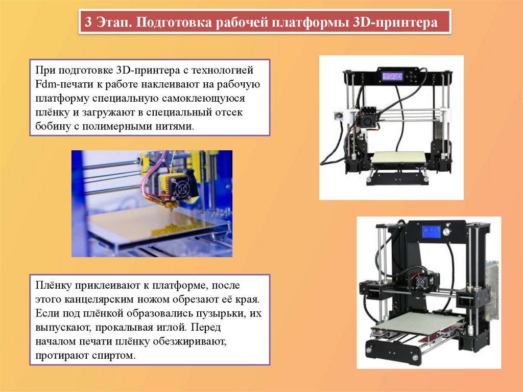 3 Этап. Подготовка рабочей платформы 3D-принтераПри подготовке 3D-принтера с технологией