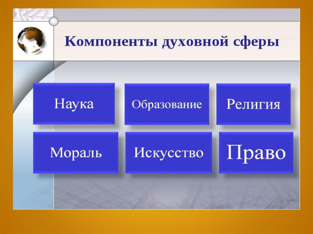 общества. Духовная культура включает в себя