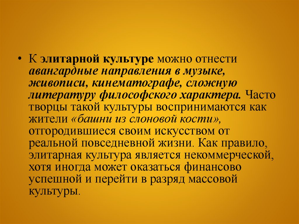 элитарная культура является некоммерческой,
