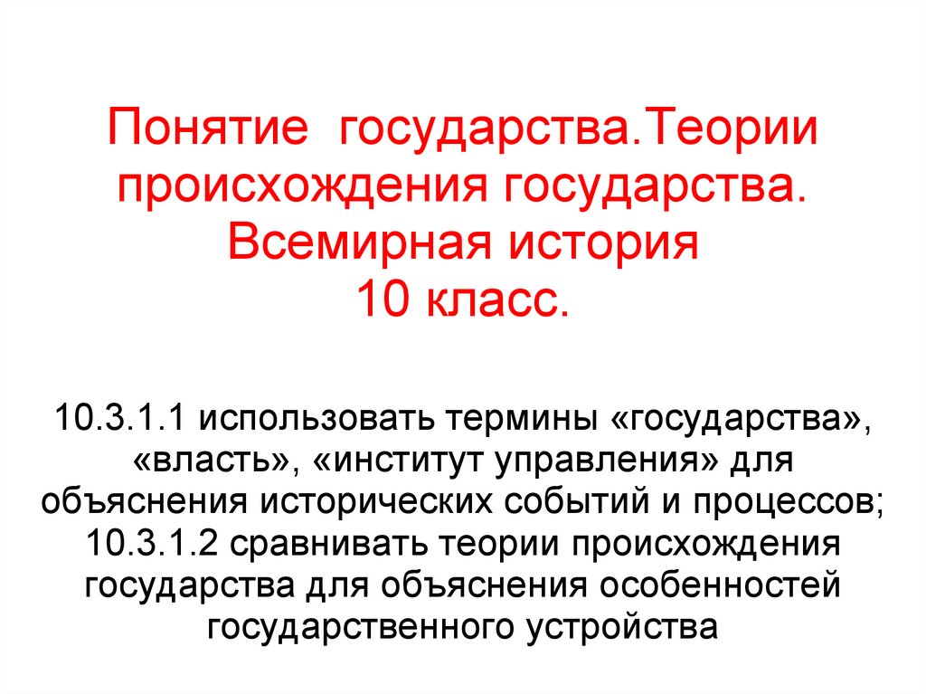 1. Понятие государства.Теории происхождения государства. Всемирная история 10 класс.