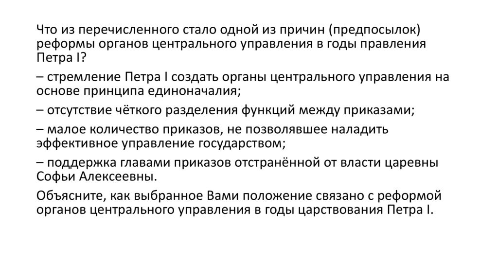 Что из перечисленного стало одной из причин (предпосылок)реформы органов центрального управления в годы правления