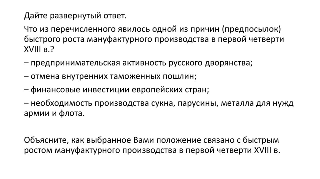 Дайте развернутый ответ.Что из перечисленного явилось одной из причин (предпосылок)
