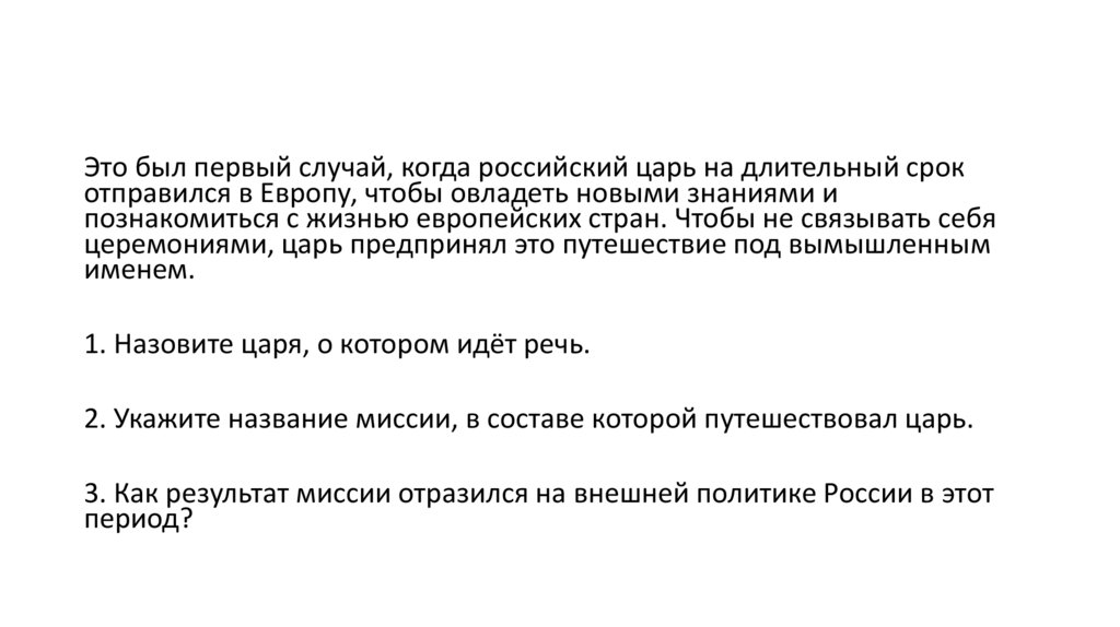 1. Назовите царя, о котором идёт речь.