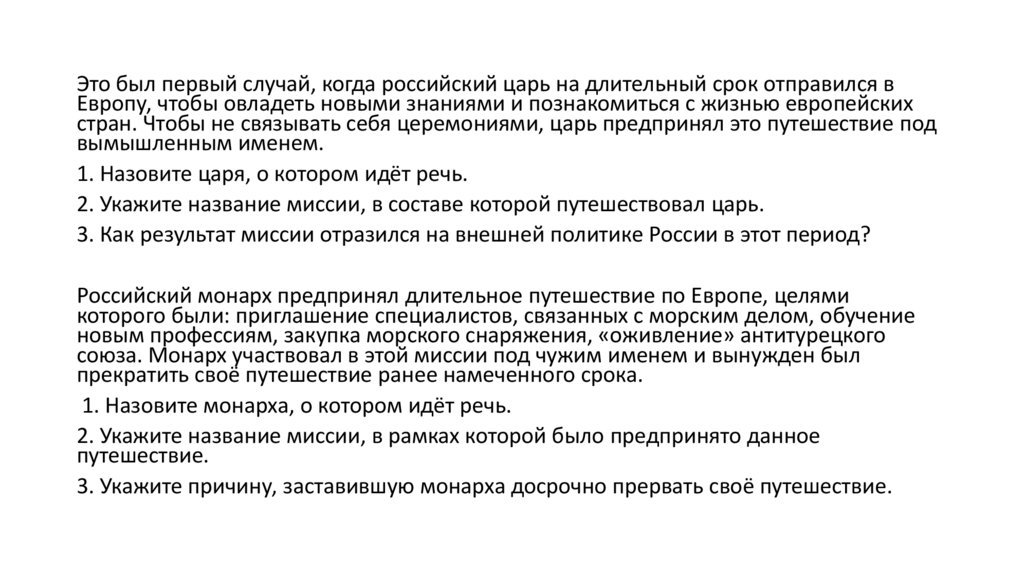 3. Укажите причину, заставившую монарха досрочно прервать своё путешествие.