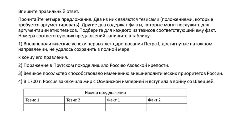 аргументации этих тезисов. Подберите для каждого из тезисов соответствующий ему факт.