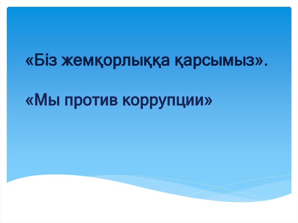 «Біз жемқорлыққа қарсымыз». «Мы против коррупции»