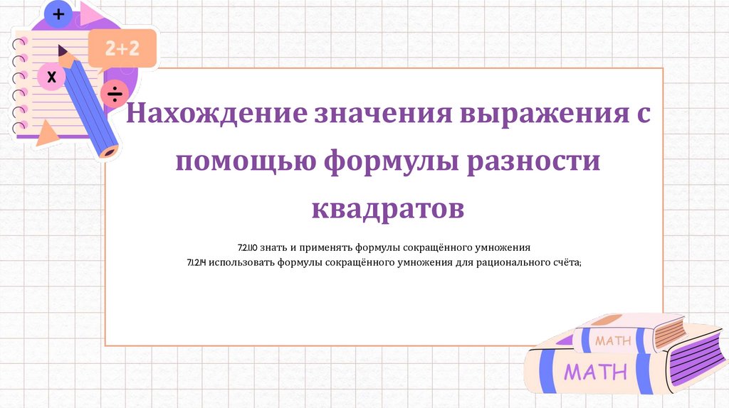 7.1.2.14 использовать формулы сокращённого умножения для рационального счёта;