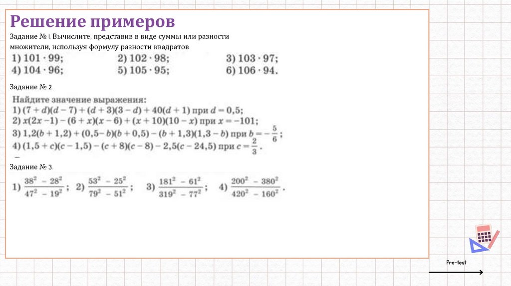 Решение примеровЗадание № 1. Вычислите, представив в виде суммы или разности