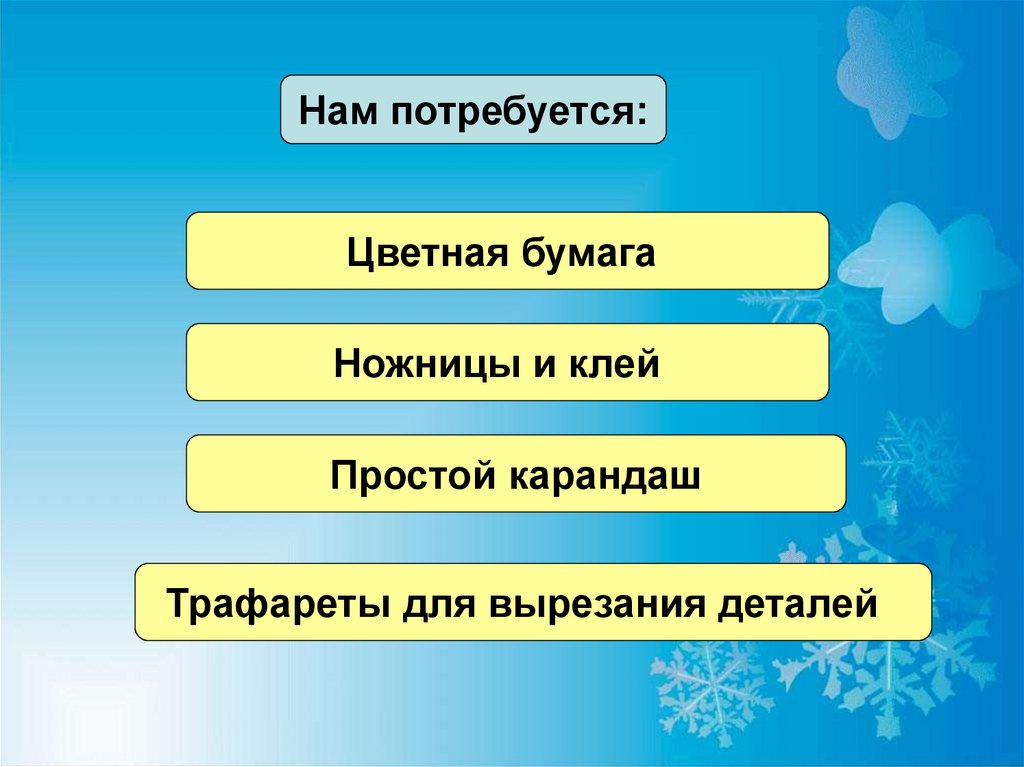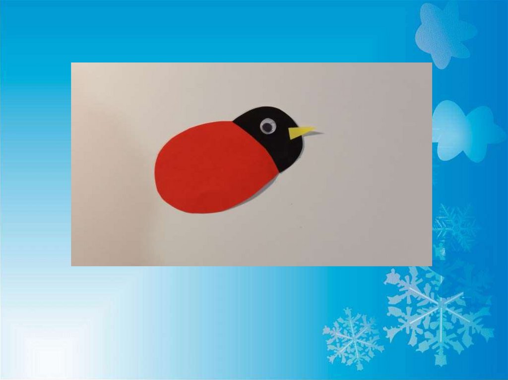 Вырезаем из цветной бумаги по трафаретуголову, хвост, крыло и грудку снегиря