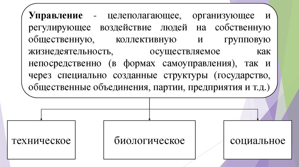 Управление - целеполагающее, организующее ирегулирующее воздействие людей на собственную